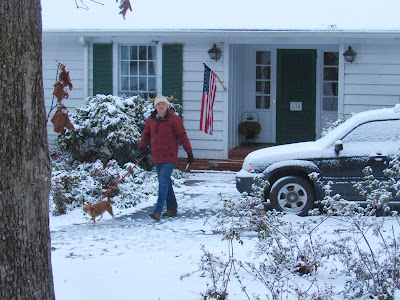 Snow day, snow day! I don't care that we only got an inch...we were out enjoying it as soon as it was light enough to see. I love walking around the property and seeing how the snow changes everything.