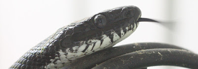 ...but black snakes aren't venomous. They're wonderful to have around because they eat pests like rats, squirrels, and chipmunks. This snake could've easily bitten me, but they're very shy and rarely bite unless stepped on or threatened.